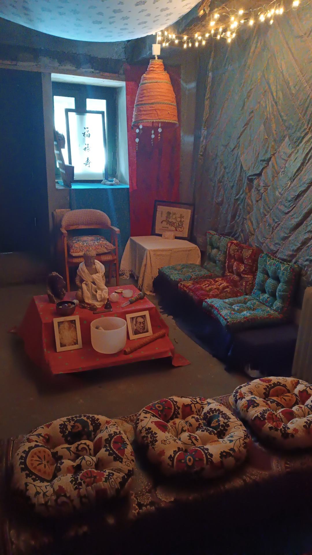 Disponemos de una amplia sala de meditación. Es un espacio perfecto para los cursos y retiros. Todos los dias realizaremos una sesión/clase de meditación por la mañana y otra por la noche a las que estás invitado a participar.